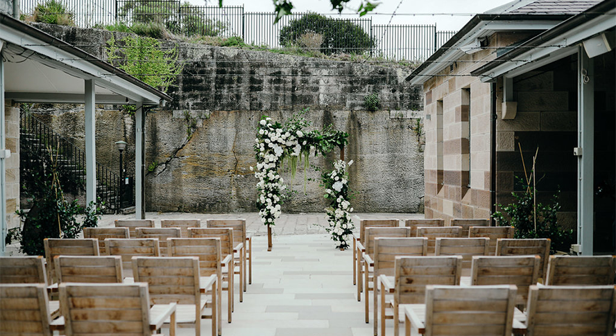 A rare blend of heritage allure and timeless elegance, Gunners’ Barracks offers a wedding venue that feels both grand and intimately personal. Set in a repurposed 1873 sandstone military building perched above Sydney Harbour, this historic site boasts sweeping 180° harbour views and is enveloped by tranquil bushland .