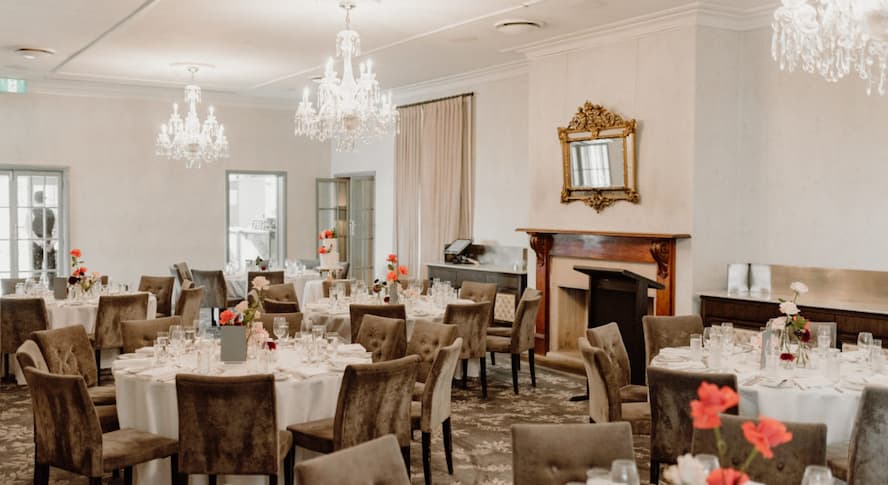 Whether you're exchanging vows on the charming Sandstone Courtyard, the expansive Harbour Terrace, or the serene Harbour View Lawn, each outdoor ceremony option offers its own stunning backdrop. The indoor reception spaces are just as striking: the Main Dining Room glows with custom wallpapers, Waterford crystal chandeliers, and period furnishings, while the Drawing Room offers a more secluded, refined setting suitable for intimate lounge-style gatherings or dancing.