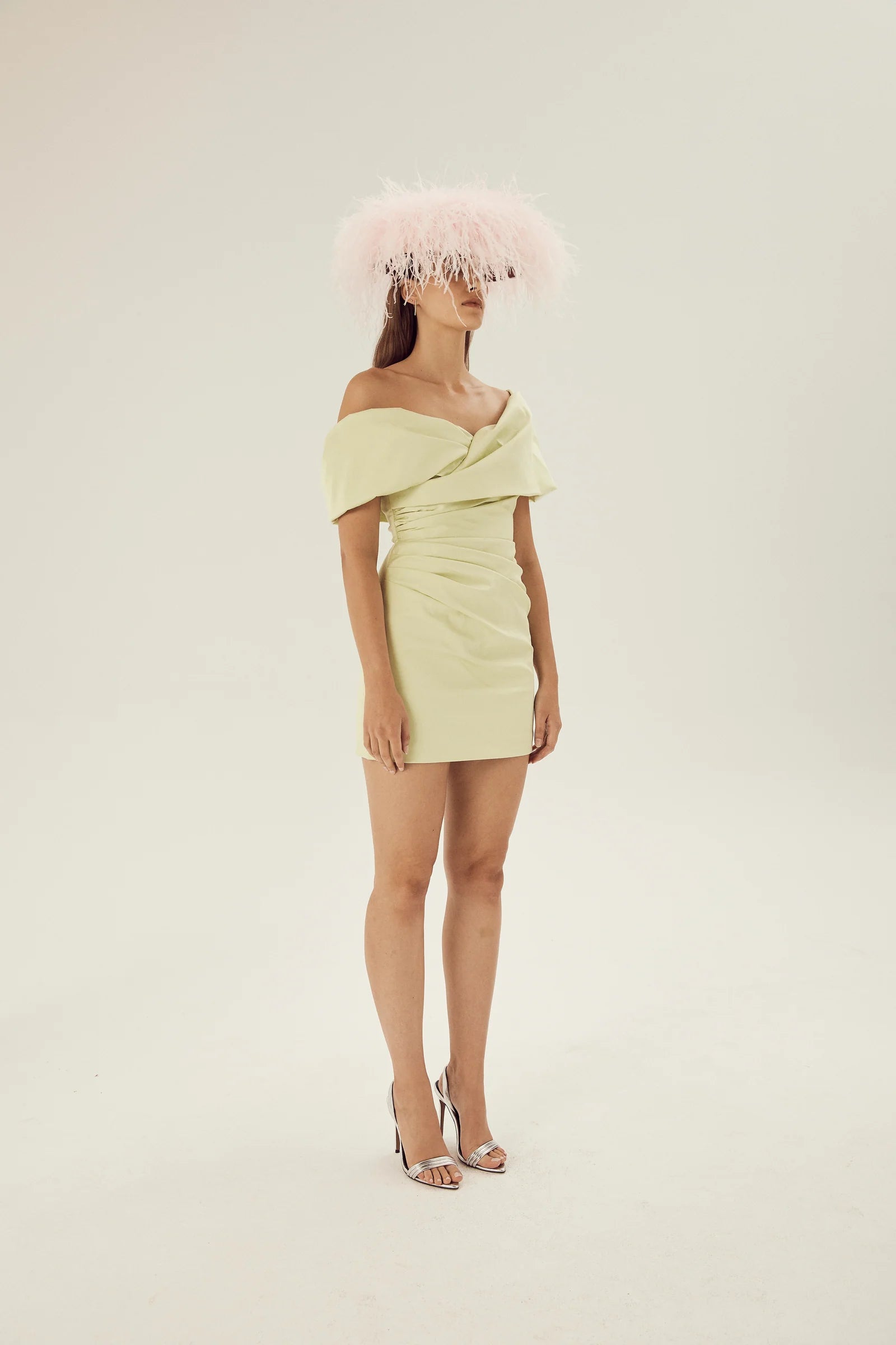 LILLY OFF-SHOULDER MINI DRESS LIME