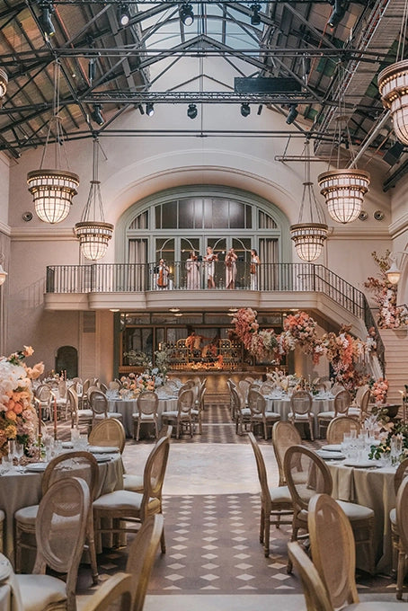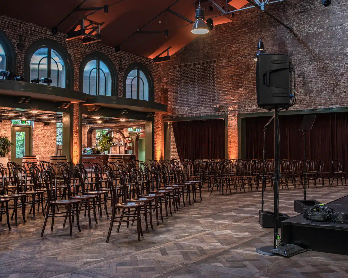 Linseed House: A former linseed oil factory, this art-deco-inspired ballroom boasts soaring 10 m ceilings, crystal chandeliers, and the capacity for up to 380 seated or 600 cocktail guests.